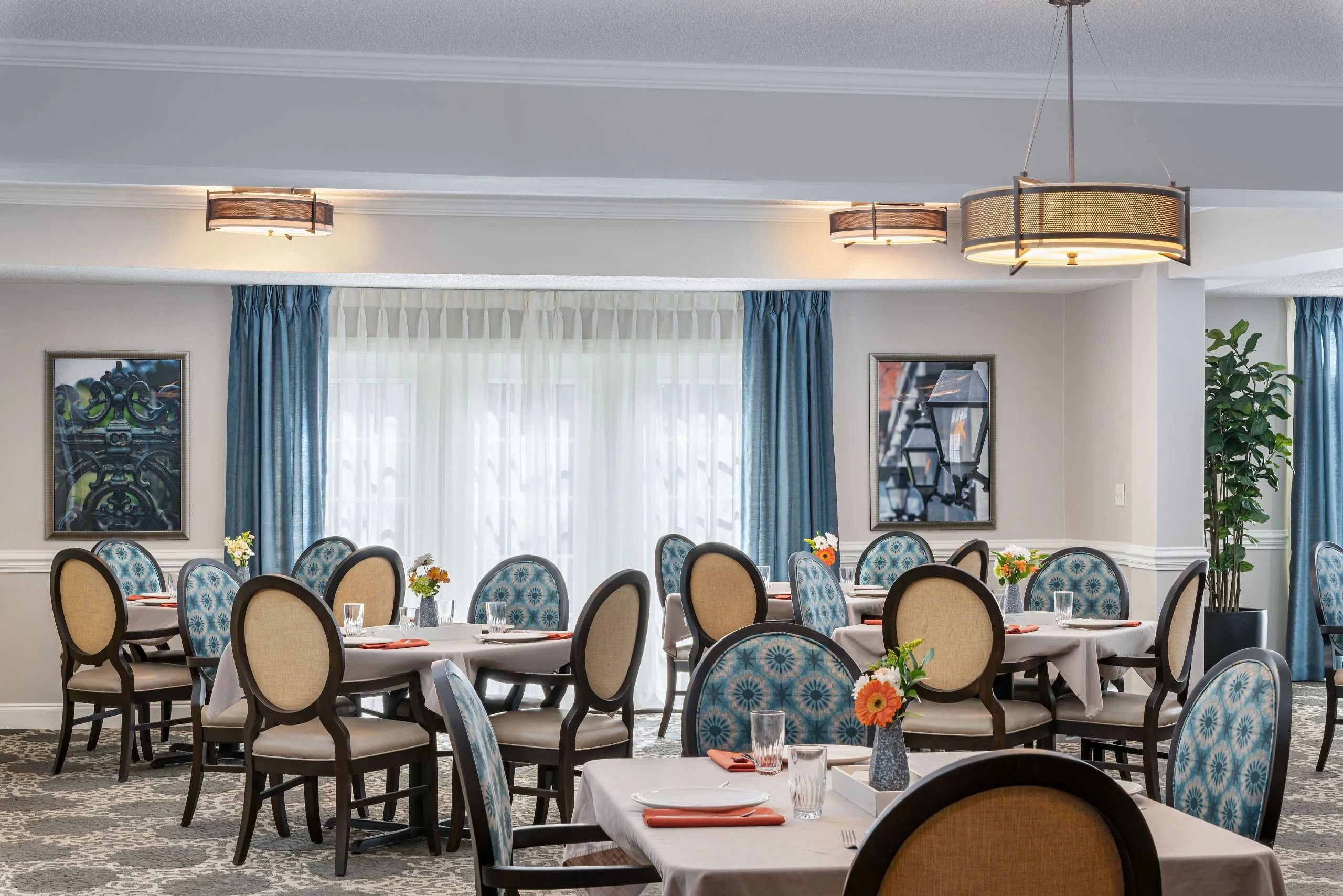 The community is equipped with a variety of amenities designed to promote an active and engaged lifestyle. Residents can enjoy the arts room, game room, library, and fitness center, as well as participate in fitness programs and outdoor activities. The indoor swimming pool and jacuzzi provide a relaxing environment, while the walking paths and garden offer a serene setting for leisurely strolls. Additionally, the community hosts resident-run activities, movie nights, and music programs, fostering a vibrant and inclusive atmosphere.